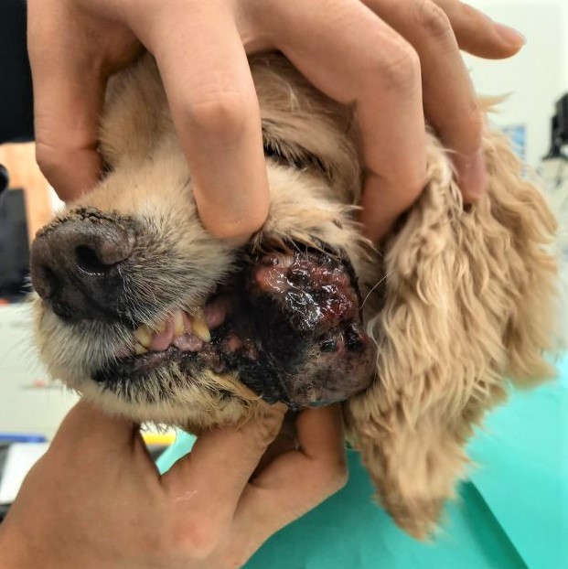 しかしそれ以上に深刻だったのが、口元にそれとハッキリわかる大きな腫瘍があったことです。